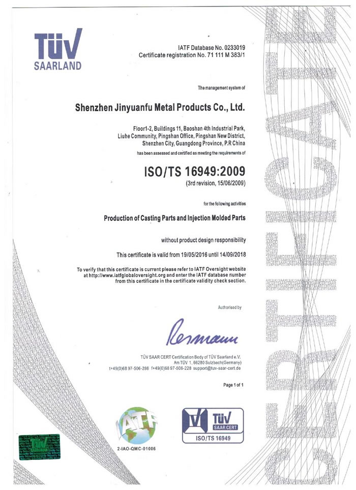 我們還通過(guò)了ISO/TS16949國(guó)際標(biāo)準(zhǔn)質(zhì)量體系認(rèn)證。