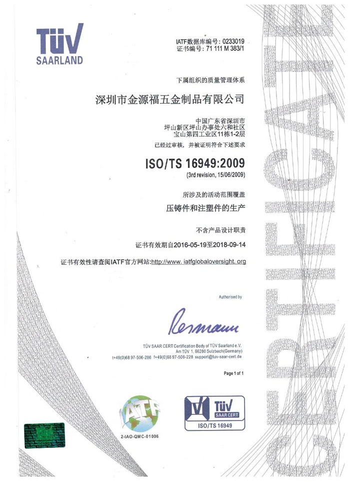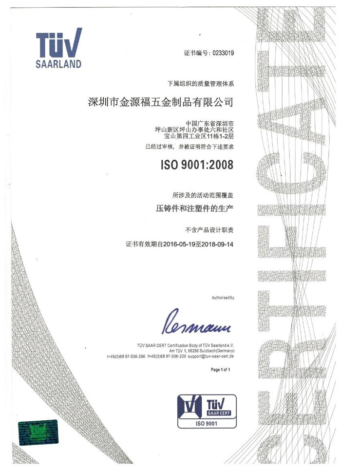 深圳市金源福五金制品有限公司成立于2003年。公司擁有8000多平方米生產(chǎn)廠地、開(kāi)發(fā)與管理精英人才、技術(shù)專業(yè)、設(shè)備精良、交通便利、服務(wù)周全、具體設(shè)計(jì)、開(kāi)發(fā)、制模、出樣、生產(chǎn)到成品出貨一體化模式生產(chǎn)廠家。已通過(guò)ISO9001:2008ISO1440/TS16949:2009國(guó)際質(zhì)量體系認(rèn)證。專業(yè)生產(chǎn)鋅合金壓鑄、鋁合金壓鑄產(chǎn)品、汽車配件、汽車后視鏡支架、車載導(dǎo)航散熱器、LED散熱器、LED燈罩、數(shù)碼電子五金結(jié)構(gòu)件、家具五金裝飾件、標(biāo)牌(LOGO)等五金壓鑄產(chǎn)品。